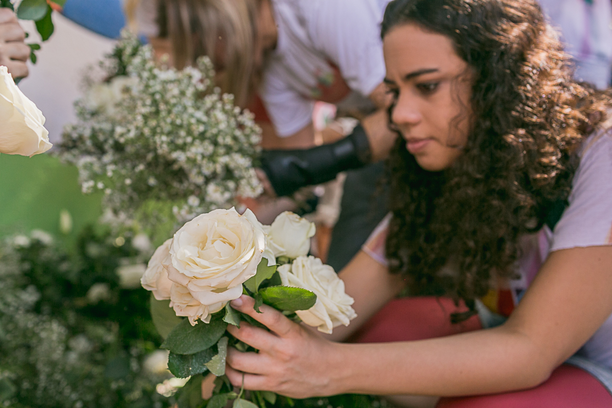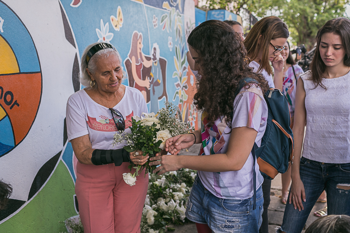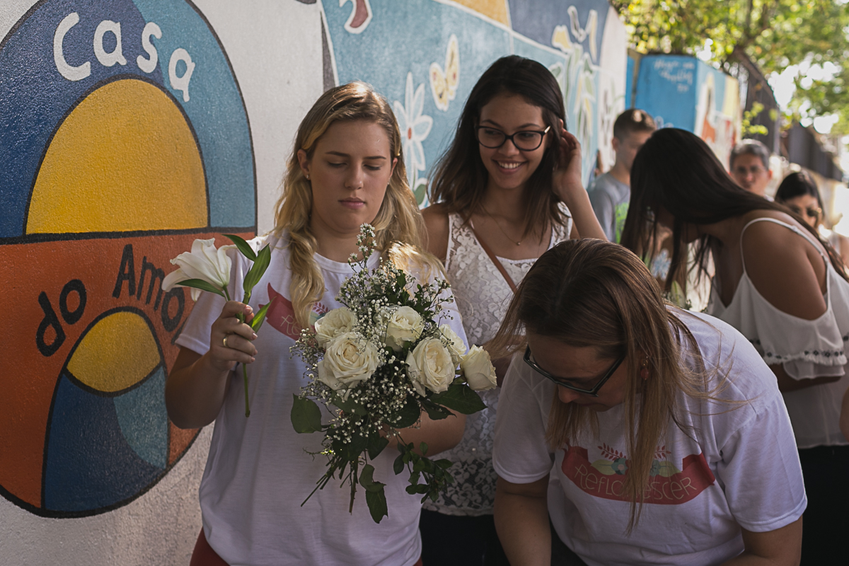 No domingo (19/03) foi realizada a 4 edição do Projeto reflorescer, é um projeto que foi idealizado por Rebeca e Manoela, elas tiveram a ideia de dá um novo sentido as flores que decoravam os casamentos, essas flores faziam parte de momentos tão especiais para os casais, e pq não reaproveitá-las para continuar emocionando, e com a ajuda de muitos voluntários foram criados vários bouquets para entregar a senhoras que vivem na Casa do Amor no Arruda.